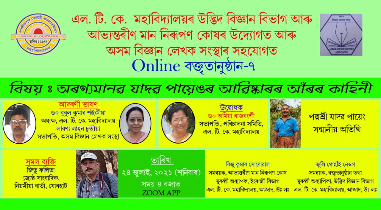 LTK College was established on 22nd August 1977 with only an arts stream at the initiative of the local people. In 1994, the Science stream was established with the demands of the present modern age. The local people were encouraged to open the science stream in spite of economic paucity in the institution. In 1994 Science stream offers two years of higher secondary certificate courses in six subjects and established a three-year degree course in 1996 with the permission of Dibrugarh University. The Science stream was provincialized under the New Assam College Provincialization Act 2013 w.e.f. 14/08/2013. From 2006-2007 Botany department started the major course and was able to show good results. Since the establishment of the major subject in the botany department 13 batches have successfully completed B.Sc. in Botany Major with 1st Class and 2nd class. The pass percentage of our department was good. Some of our students completed P.G. Course and completed State Eligibility Test (Life Science). One of our students pursuing a Ph.D. at Cotton University in the Department of Botany.