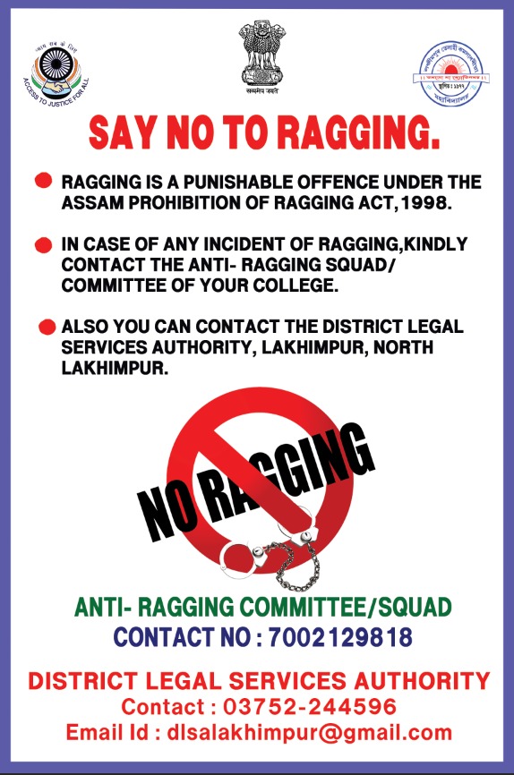 The College has adopted a policy of zero tolerance toward ragging and strives to achieve a completely ragging-free campus. An Anti-Ragging Committee (ARC) has also been set up. The names of the ARC members along with their mobile numbers are also published on this page for the victim or his/her parents/guardians to lodge a complaint to the coordinator of ARC.