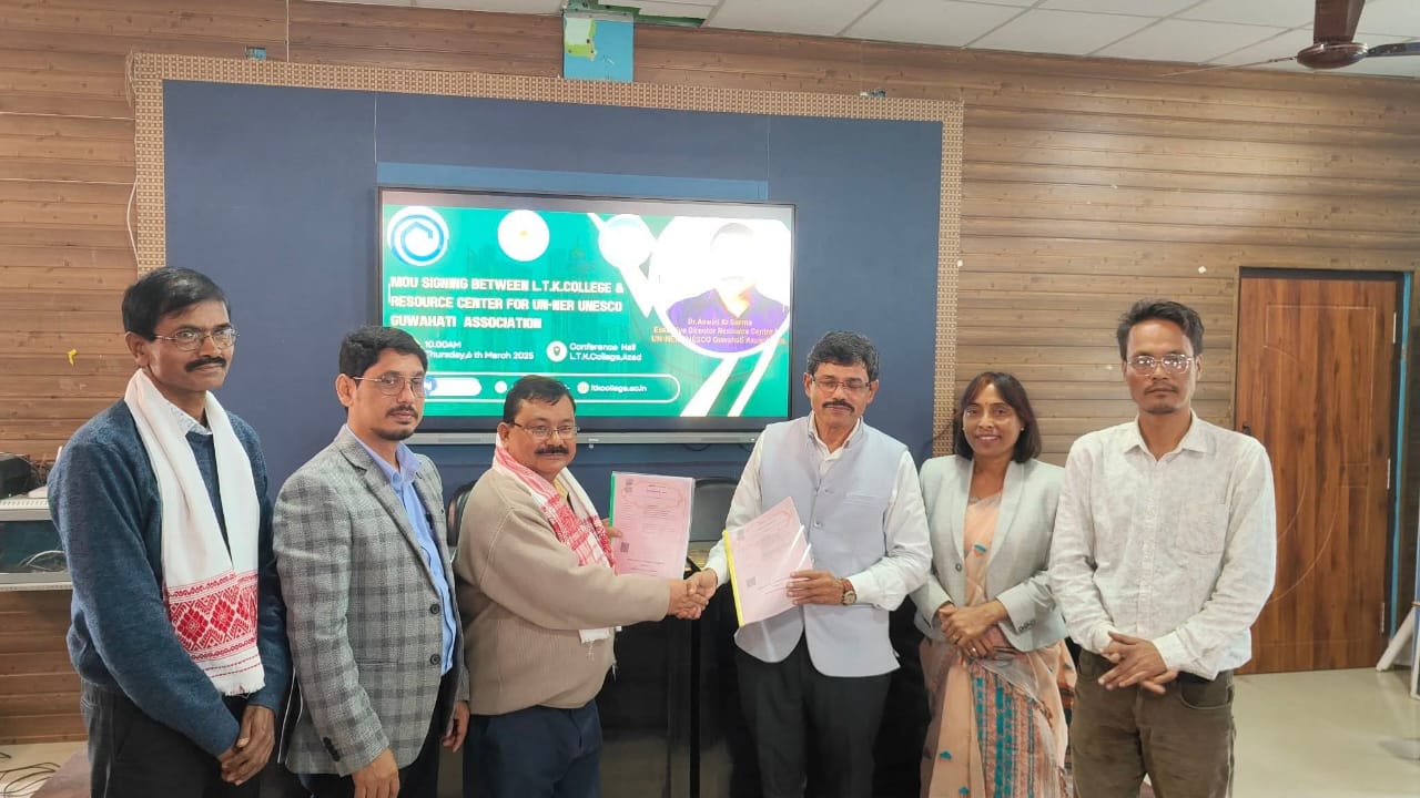 A Memorandum of Understanding (MoU) was formally signed between L.T.K. College and RCUN–NER, UNESCO Association, Guwahati, officially recognizing the institution as a Centre of Excellence committed to research, innovation, and global citizenship.